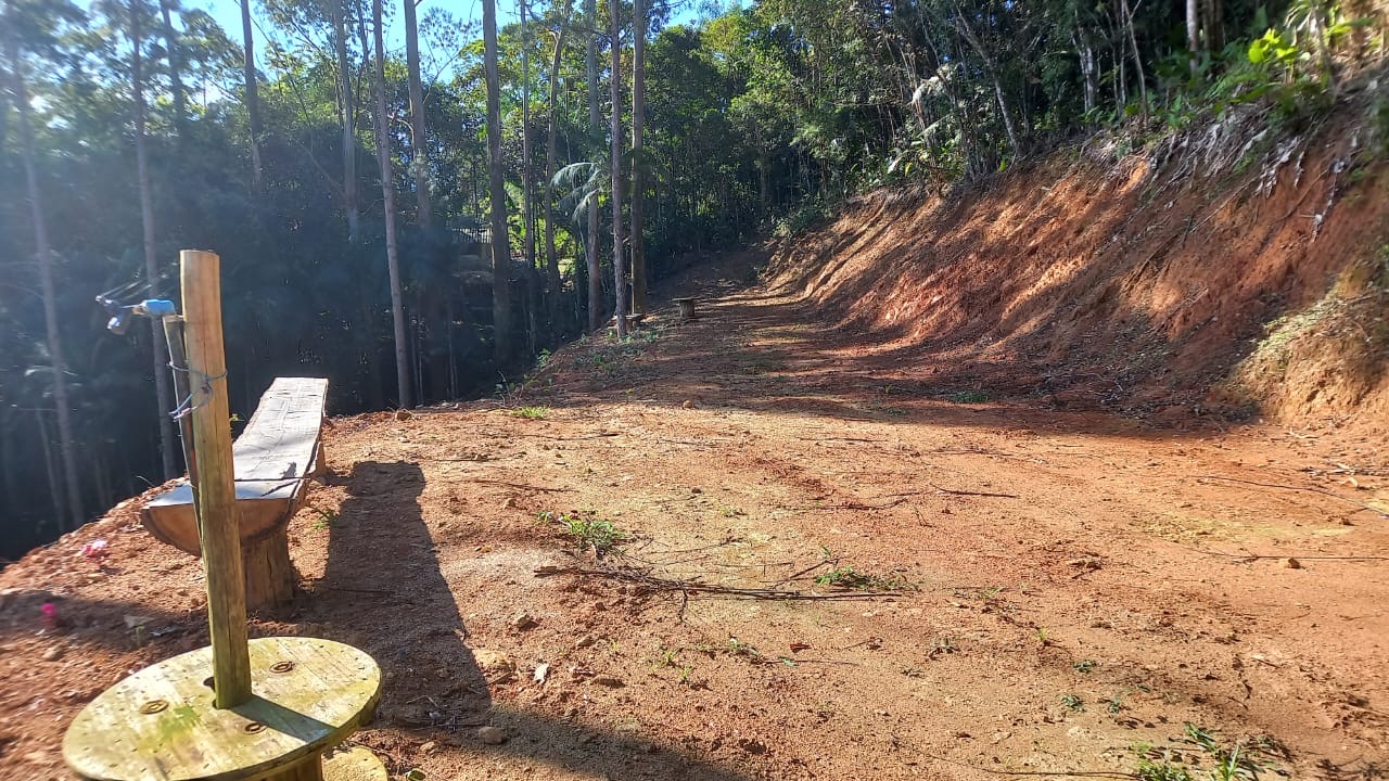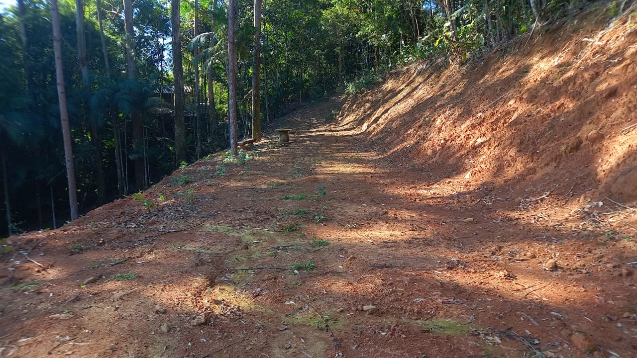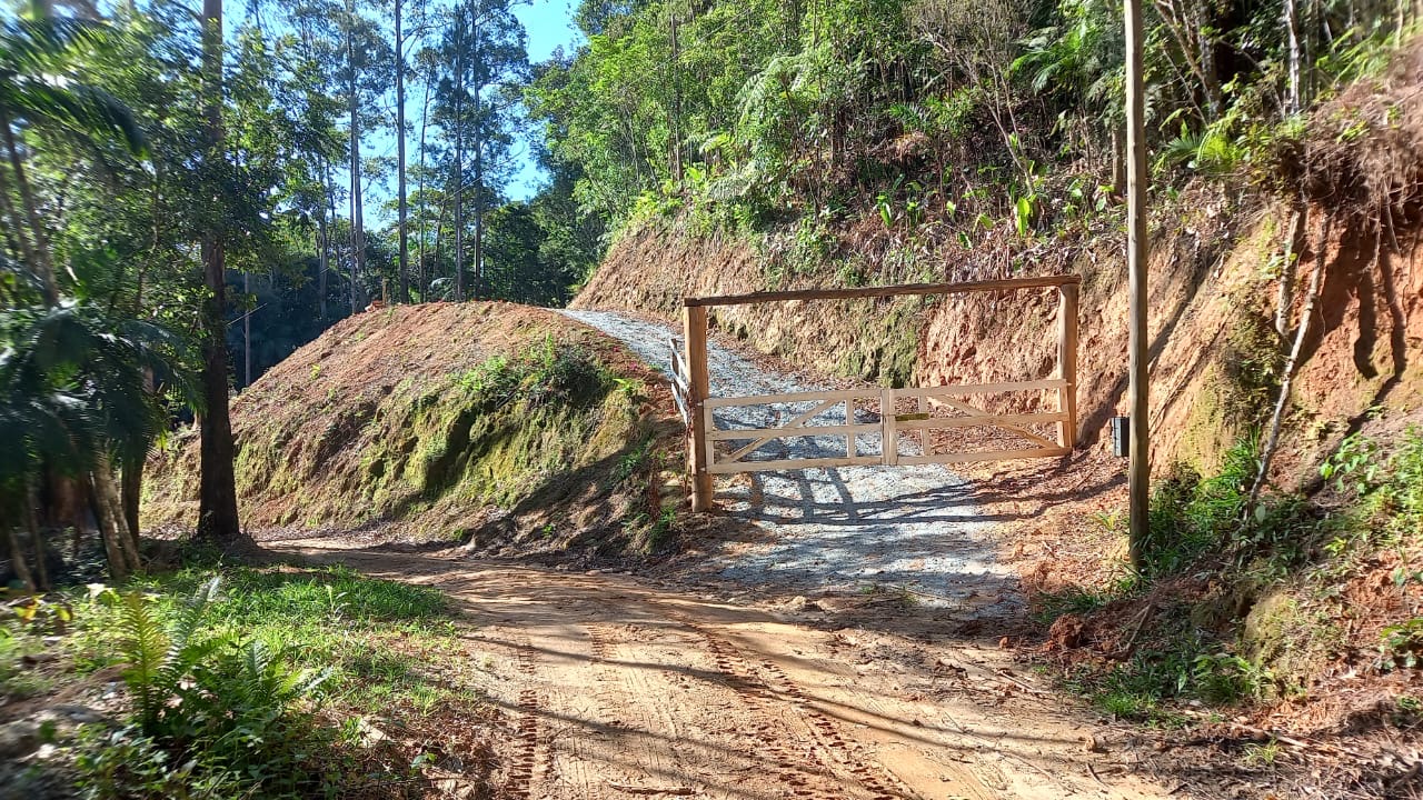 Luz, água e nascente comunitária. O terreno possui um pequeno plano de frente para a rua que o corta, com o restante em mata nativa, repleta de palmitos. Ótimo acesso, a 3 km da BR-282 e a 44 km de Florianópolis.