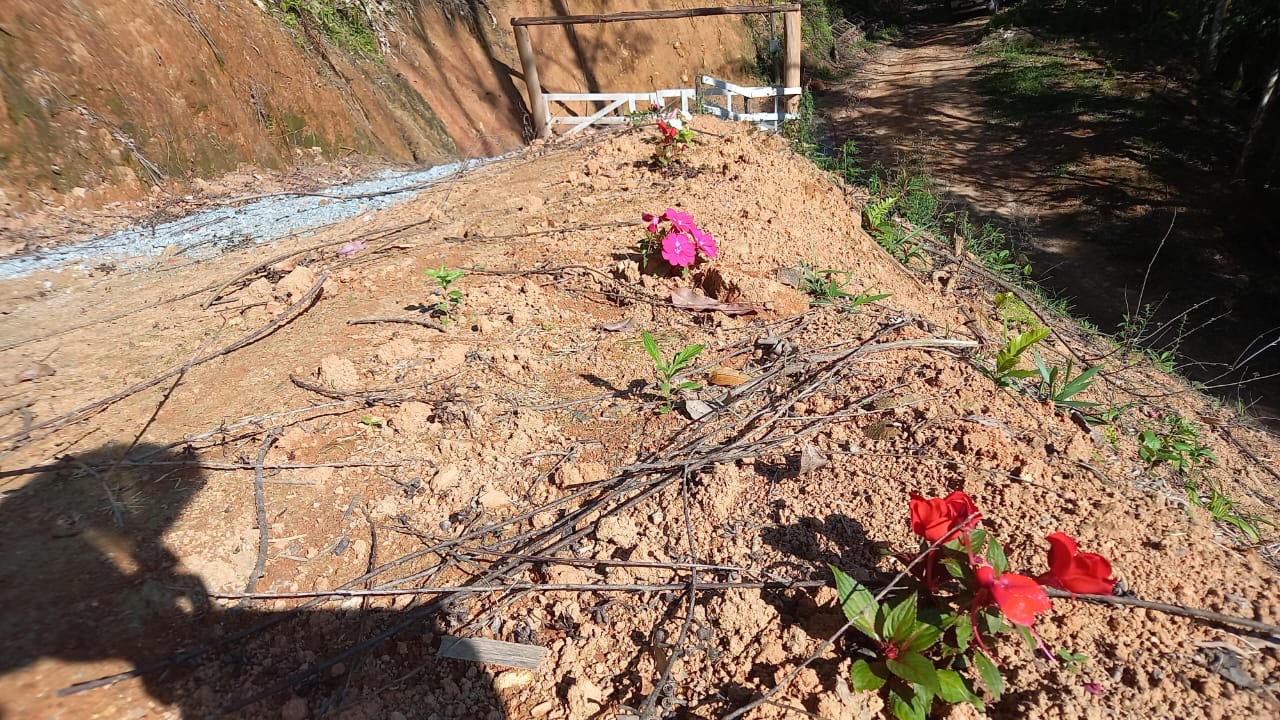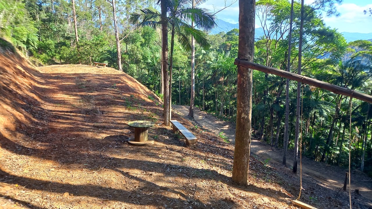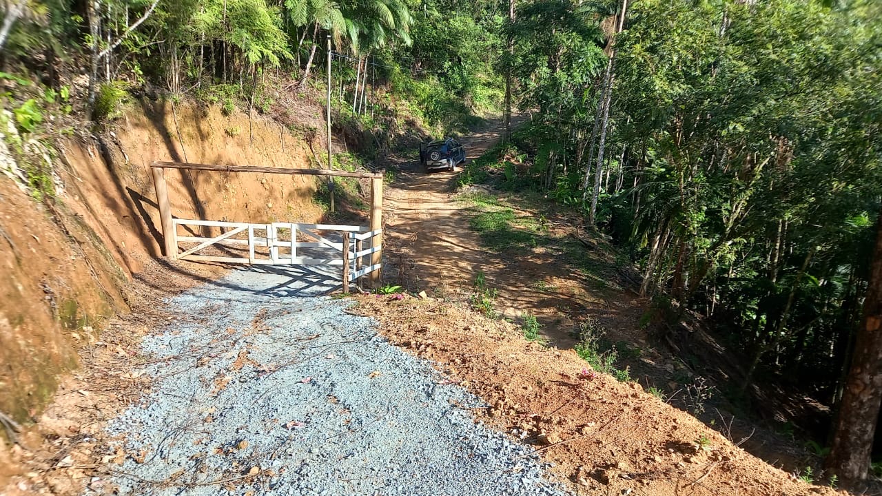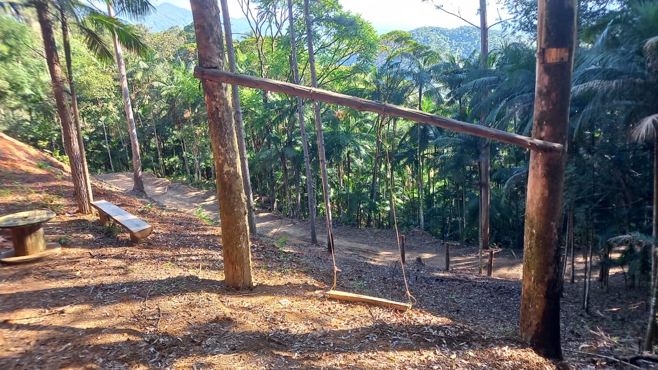 Luz, água e nascente comunitária. O terreno possui um pequeno plano de frente para a rua que o corta, com o restante em mata nativa, repleta de palmitos. Ótimo acesso, a 3 km da BR-282 e a 44 km de Florianópolis.