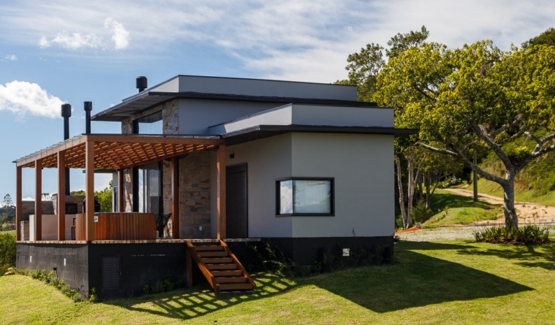 Construída com tecnologia modular (estrutura em aço galvanizado, EPS e drywall com isolamento térmico), também decorada e mobiliada por arquiteta.