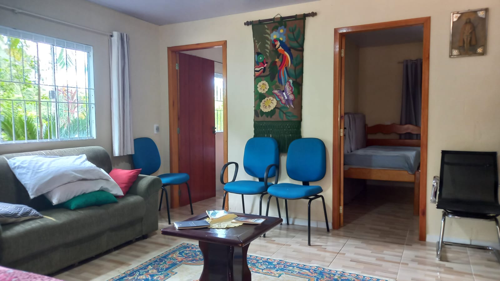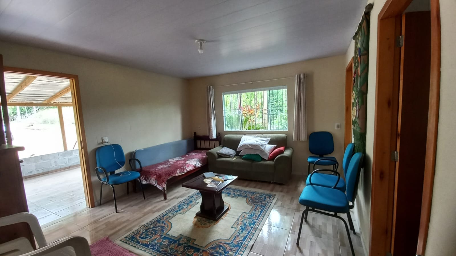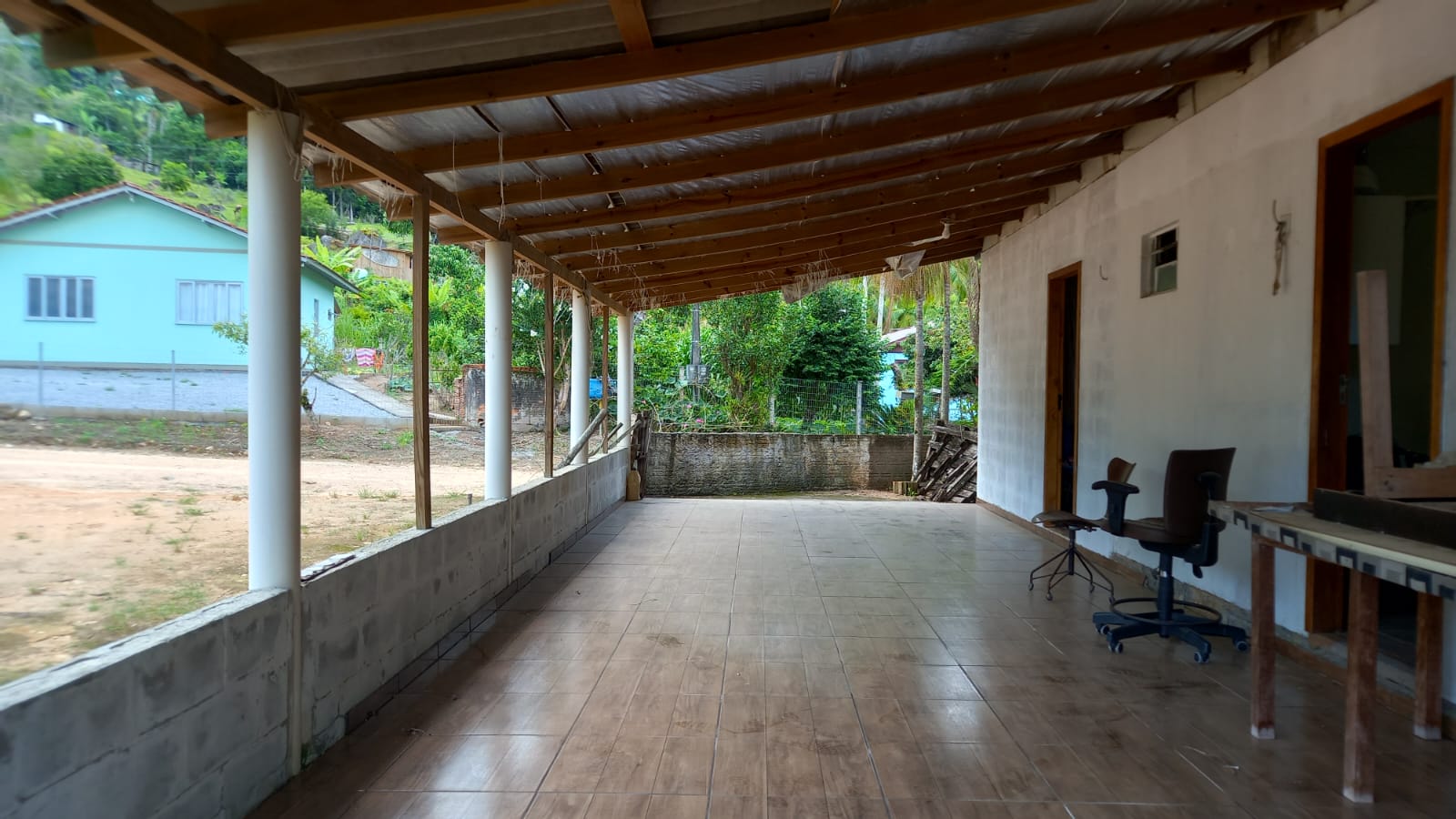 O imóvel conta com casa em alvenaria, com aproximadamente 95 m² de área construída, composta por 3 quartos, sala, cozinha, banheiro social e lavabo, além de varanda nos fundos. Permanecem no imóvel os móveis fixos, agregando praticidade.